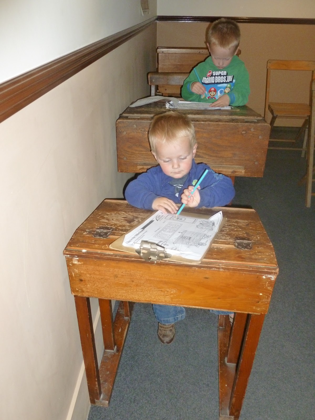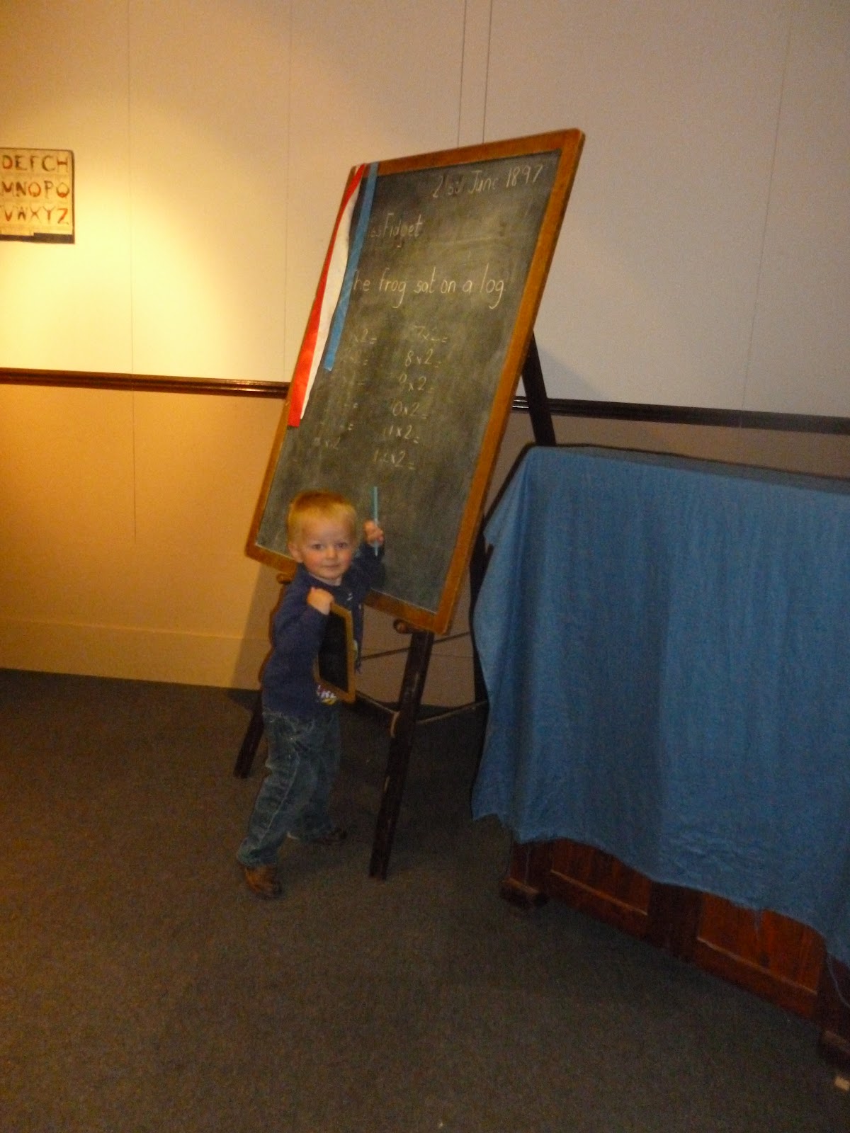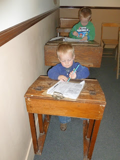 Then middle man decided that he was the teacher - I apologise to anyone that has him in their class in years to come. It was rather nostalgic looking at the desks and blackboard, even if it did make me feel my age.