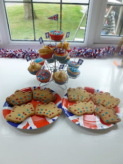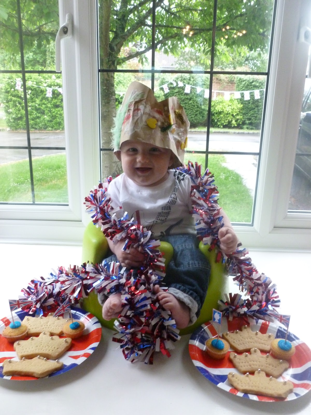 So Bank Holiday Monday saw us getting ready for the Jubilee celebrations where we live. Cakes and crowns were baked. Bunting hung. Baby man dressed in Jubilee clothing for Mummy to take pictures of him for this special occasion in his first year.
