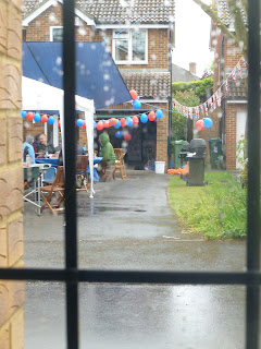 Tuesday saw the party. Which was lovely if very cold and rainy. Middle man was up to his usual mischeif and sneaked inside a neighbours house and was found helping himself to an apple from the fruit bowl! After three or four hours outside I was relieved that middle man was getting tired and I took him inside so a rest and had a cuppa myself whilst watching my Hubbie out in the wet still.