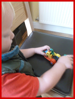 Mic O Mic is a German made construction toy. Big man is nearly 5 and they are recommended from 5+. I was impressed with how well he did at constructing them. The pieces are small and require a lot of pushing so he did need some help with this. They are well made toys with no sharp edges. The racing car was slightly easier to make than the dumper truck as all the connectors were the same size and the black pieces mostly laid flat. The hardest part is when you need to bend the connectors, and big man doesn't have the dexterity to do this at the moment. Big man particularly liked the tweezers that can be used to take the toys apart again. I think you will agree from the photos below that in the case of big man and me construction = concentration!