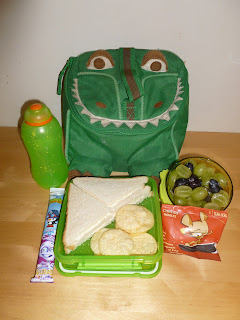 I have no idea if there is too much/too little in there for him to eat - but I guess I will figure that out. I have opted for cream cheese sandwiches. I will be freezing the fromage frais overnight so that it will be defosted by lunchtime and still be cool. I have opted to put in a few popchips as a treat. A bag is a bit big for big man - when I say that he would eat it all but then not eat his sandwiches! I have also learnt that I need to hide the remaining half a bag so that it can be used on another day, as big man has got hold of it and is polishing them off as I type! A few grapes (which I have cut in half out of habit from pre-school) and some cheese as big man is a bit of a mouse. I shall fill my bag with food for him after school incase he is hungry before he is rushed off to his gymnastics class.