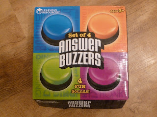 When I first saw the Answer Buzzers, I immediately thought how good these would have been when I was a teacher. Used in quizzes I think they would have kept the pupils on task and made a great plenary - once the excitement of the silly noises had passed. If you click the link above you can hear what the buzzers sound like. Middle man likes the doorbell style one best!