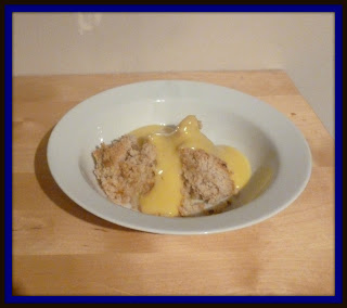 As I told you earlier, I am not good at resisting temptation so I had to try a small portion. It was yummy, and I really liked that the custard has no added sugar as the dessert is already sweet enough with the crumble topping.