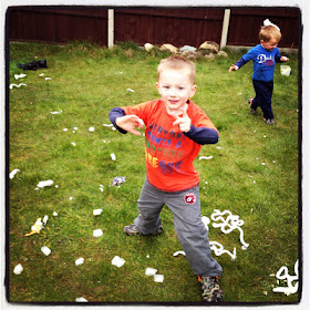 We had lots of fun, so I need to put my thinking cap on to decide what messy play this week will hold. Do go and look at Jennie's blog - there are some amazing ideas.